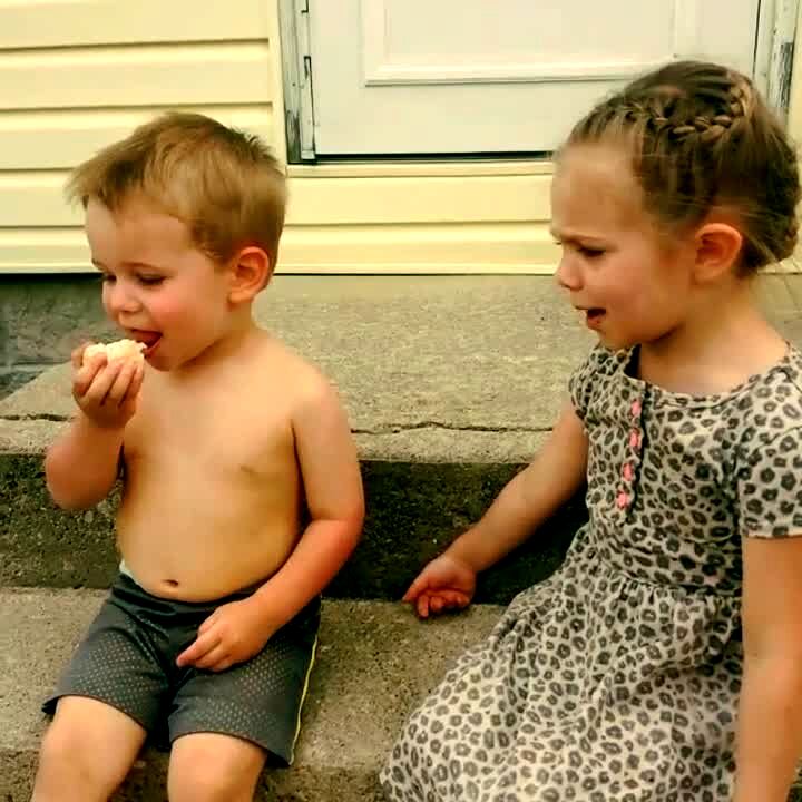 A woman tells a young boy and a young girl, "you're going to have a baby brother or sister." The young boy says, "wait, I'm going to have a baby brother?" The woman corrects, "or sister." The young boy says, "oh, screw that," and walks out of frame.