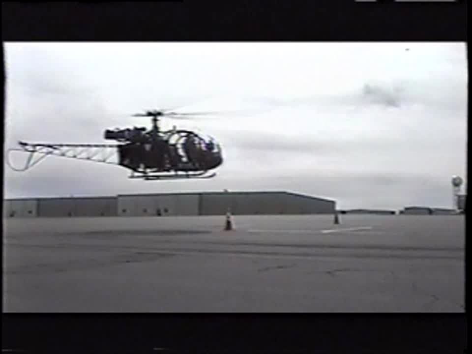 Gas powered toy helicopter chases man down and hits him in the butt- then crashes. -little head/tail-
