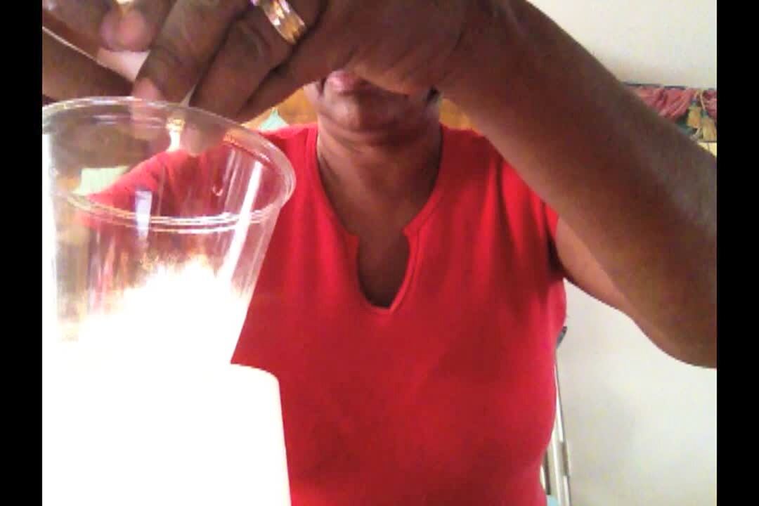 A woman shows us how to separate eggs using a plastic cup and a water bottle but spills. Great reaction at 1:18.