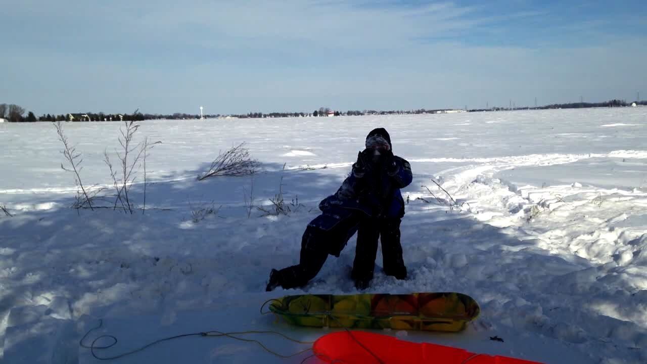 A father rides in an inflatable tube tied to a boat, but it flips him over into a lake, and his kids cry and scream.
