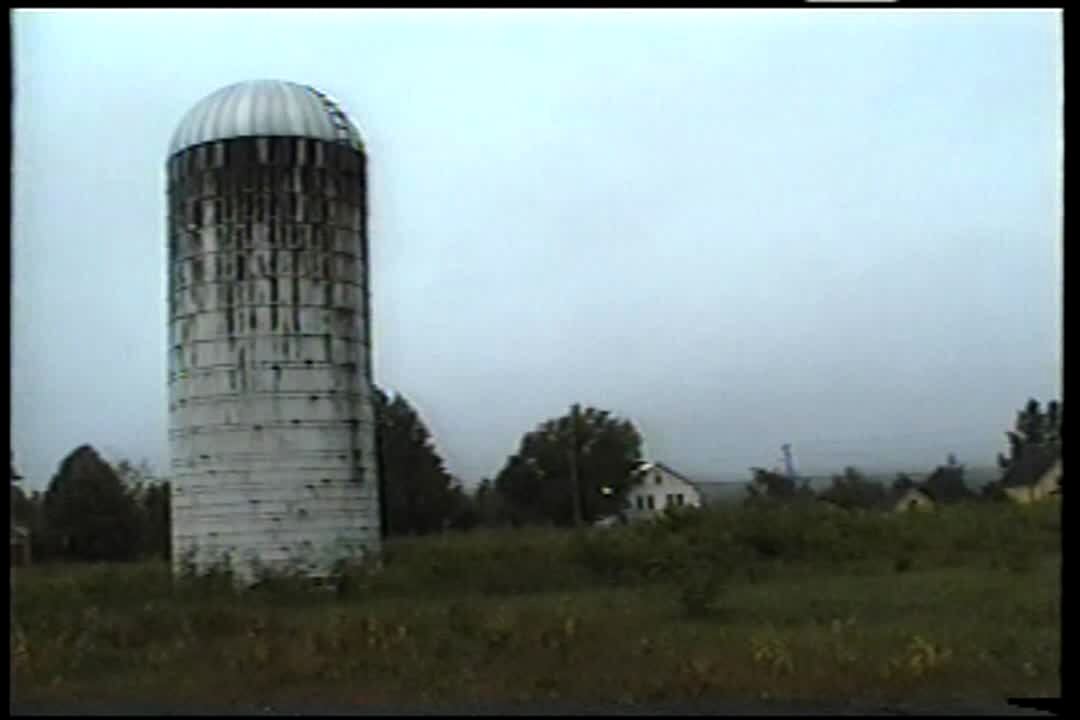 Man pulls on dilapidated barn frame and runs when it all collapses. Work. Home improvement.