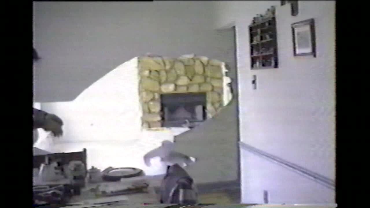 Two men repeatedly run through a wall of drywall in a basement while demolishing it. One runs into the wall, it doesn't break, and he falls down at :41. He says he bit his tongue.