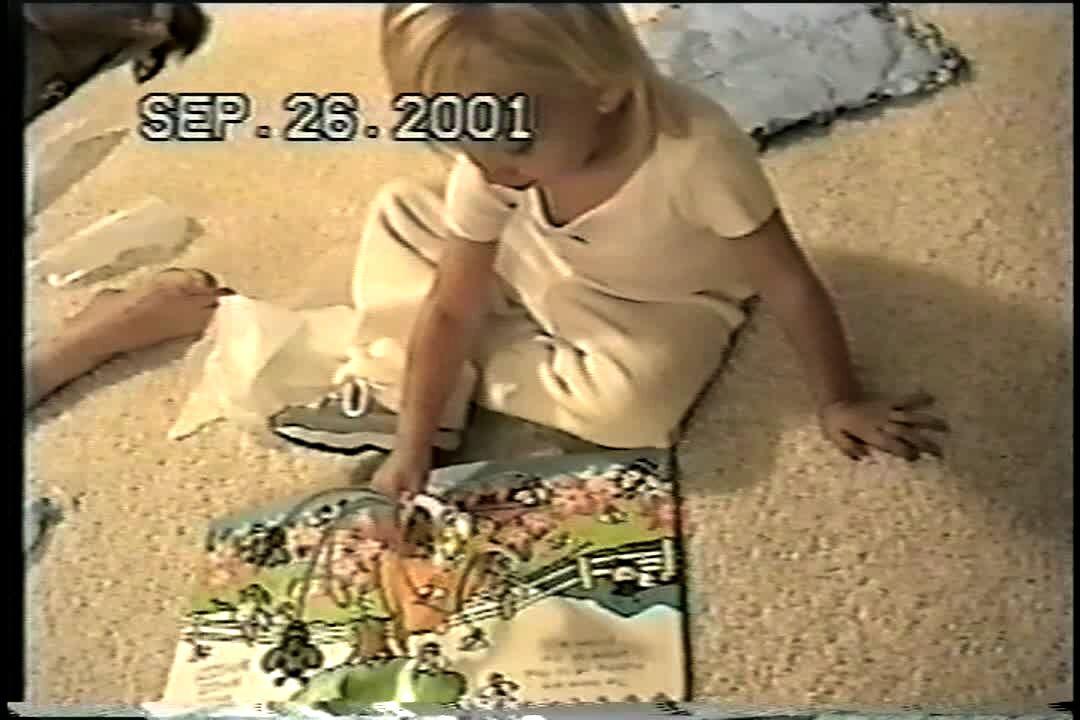 Girl pulls gifts out of stocking and gets scared by ball that looks like a spider.