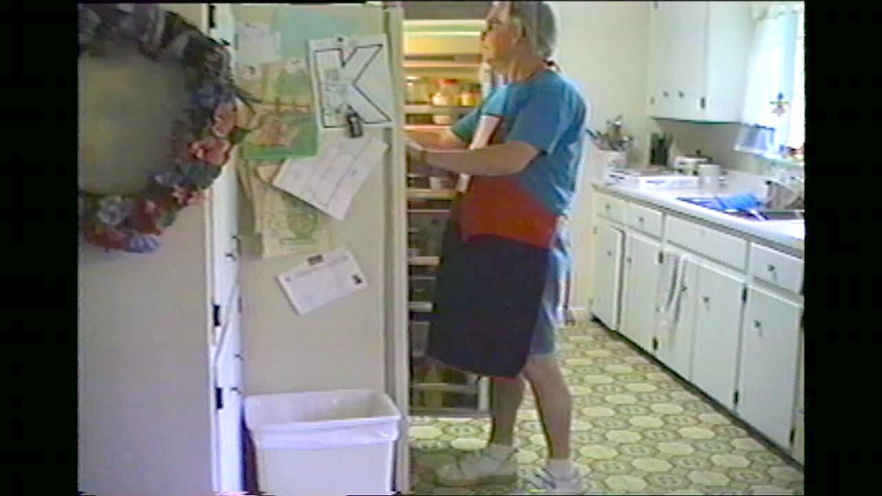 Grandpa / senior man pulls off refrigerator door (this may be staged)