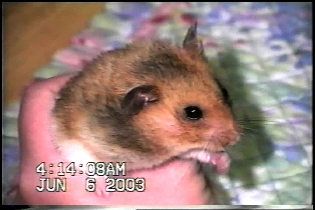 A hamster eats a Ritz cracker. The cracker is stored in the hamster's cheeks.