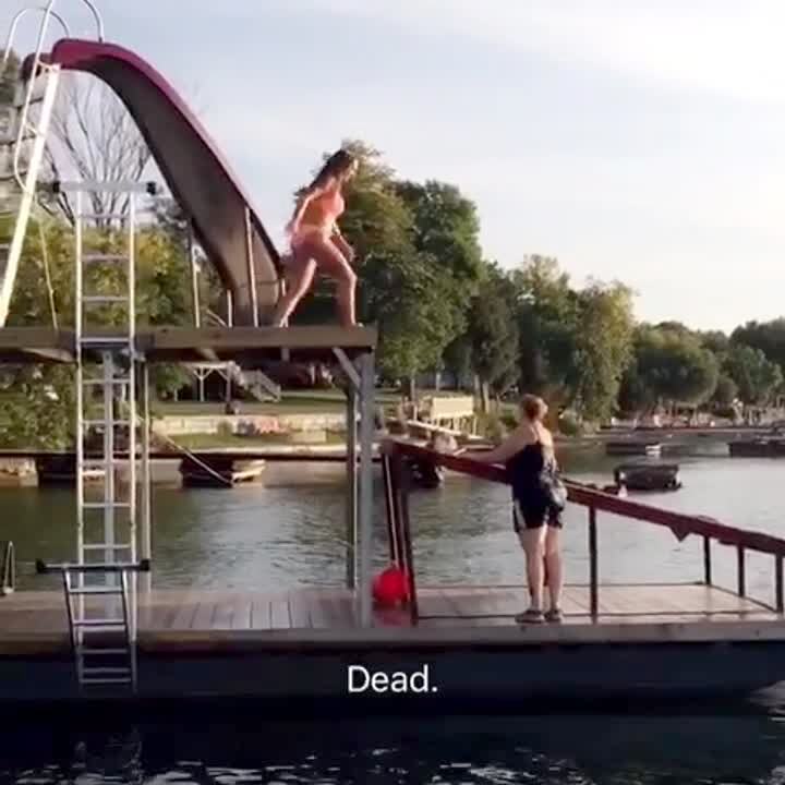 A dog runs and jumps in front of a hose repeatedly as another dog drinks water from it outdoors.