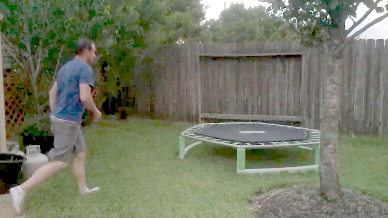 A woman scares her husband, as he walks out of a room then says, "god dang-it, you 'bout made me drop my dang pickles!" Music rights not cleared.