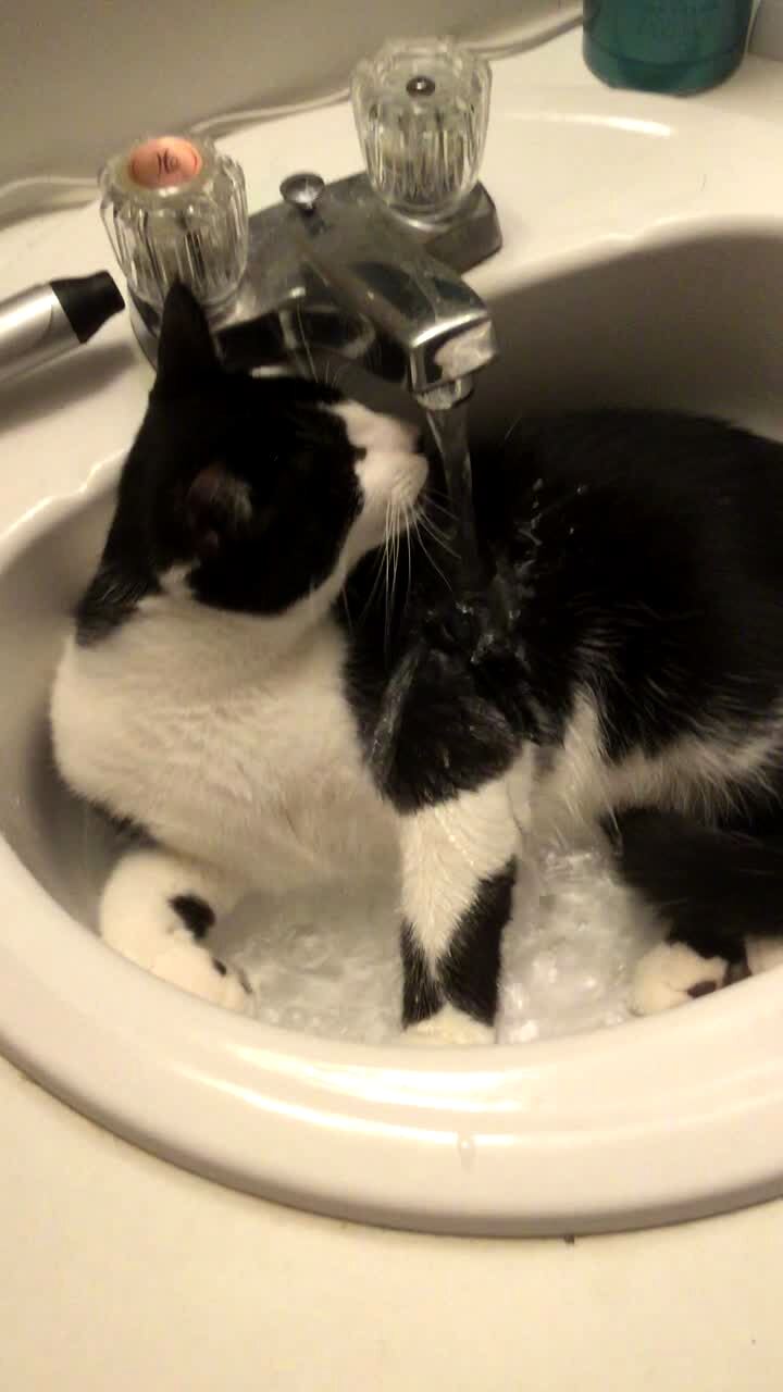 A man opens a kitchen cabinet as ping pong balls fall on top of him. He asked if it means a woman is pregnant.