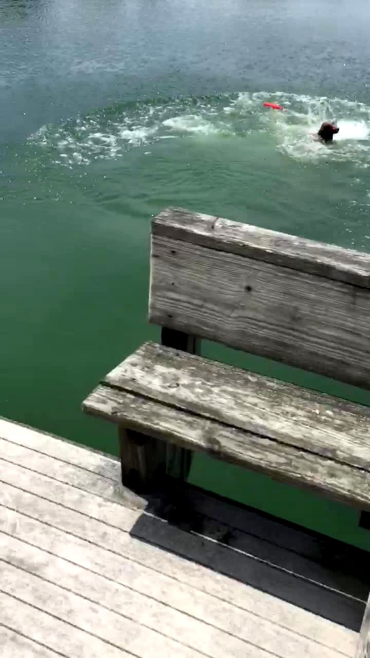 Several young boys & girls children run down a dirt hill by the woods into a lake after man does a countdown. Girl slips at the bottom of the hill and falls hard face first into the water. She gets up, with recovery.
