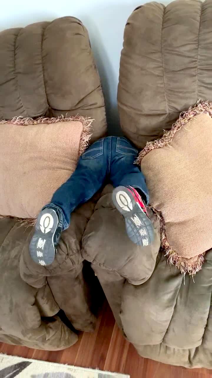 A young girl tries to run on a treadmill, but turns it up too fast and falls, face planting and going into a wall indoors.