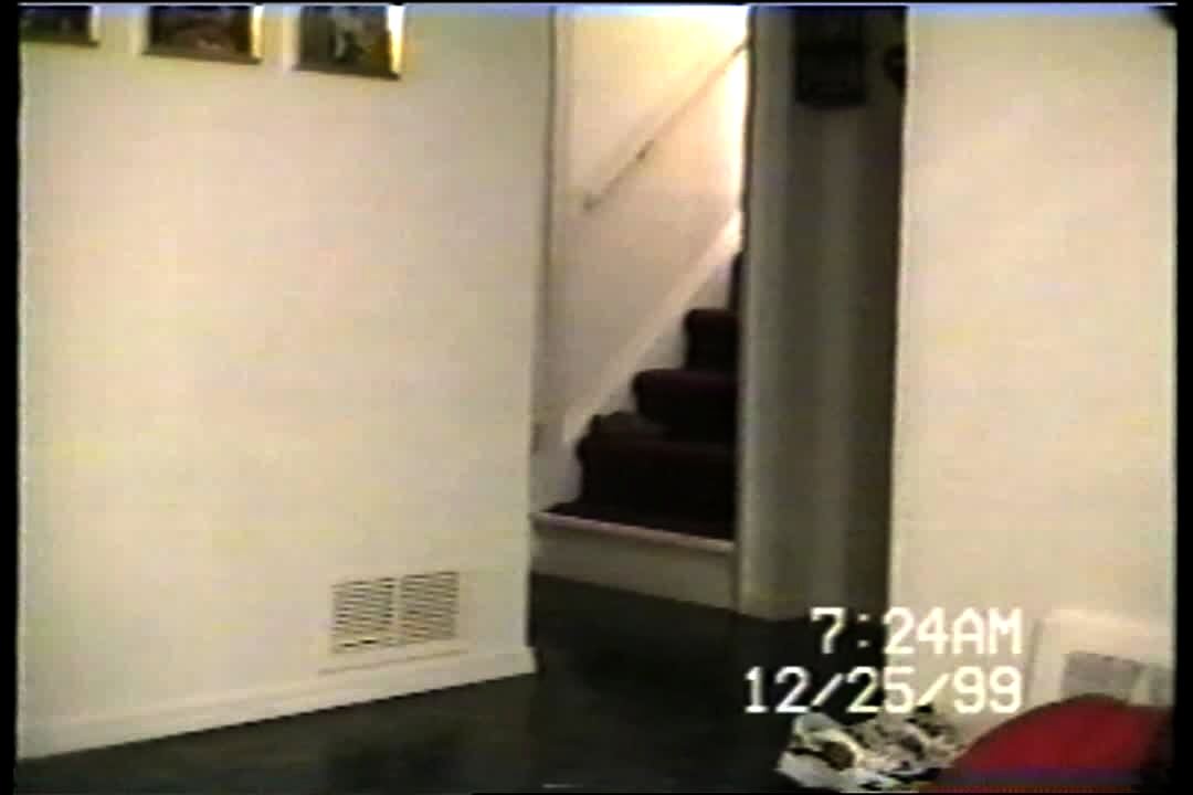 A young boy who pulls on decorated a Christmas tree. The tree falls on top of him, appearing as if he's been crushed. His mother checks on the noise and the boy safely crawls away. Security footage