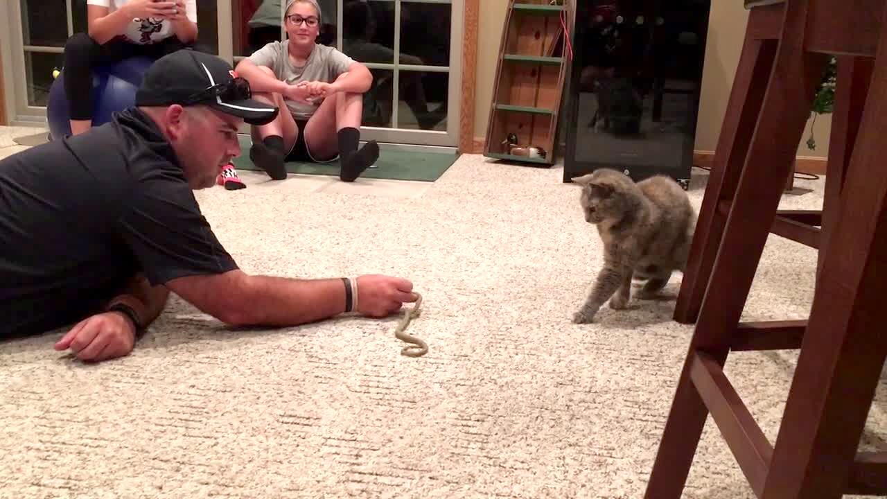 A young boy misses hitting a large water balloon with a bat. The balloon hits him and knocks the boy down in slow motion. AA: Super Slo-Mo Water Balloon