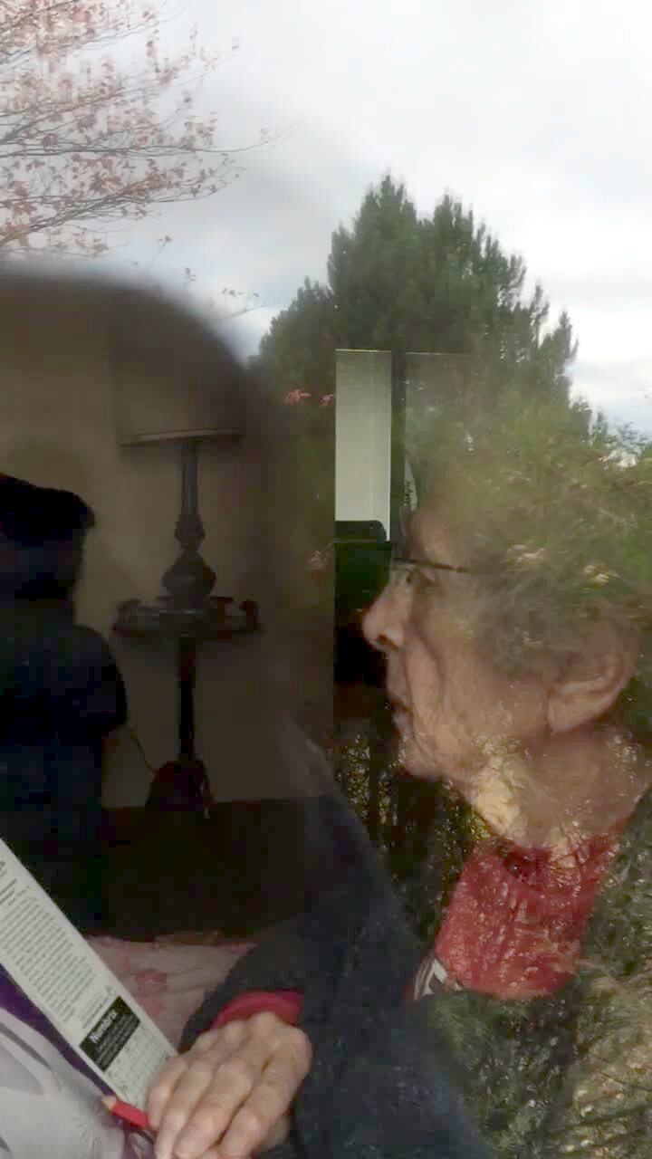 In security camera footage, a man walks out of his house to get the newspaper when he slips and falls on his driveway, then slides down the driveway to reach the paper before he scoots back up the driveway without standing up.