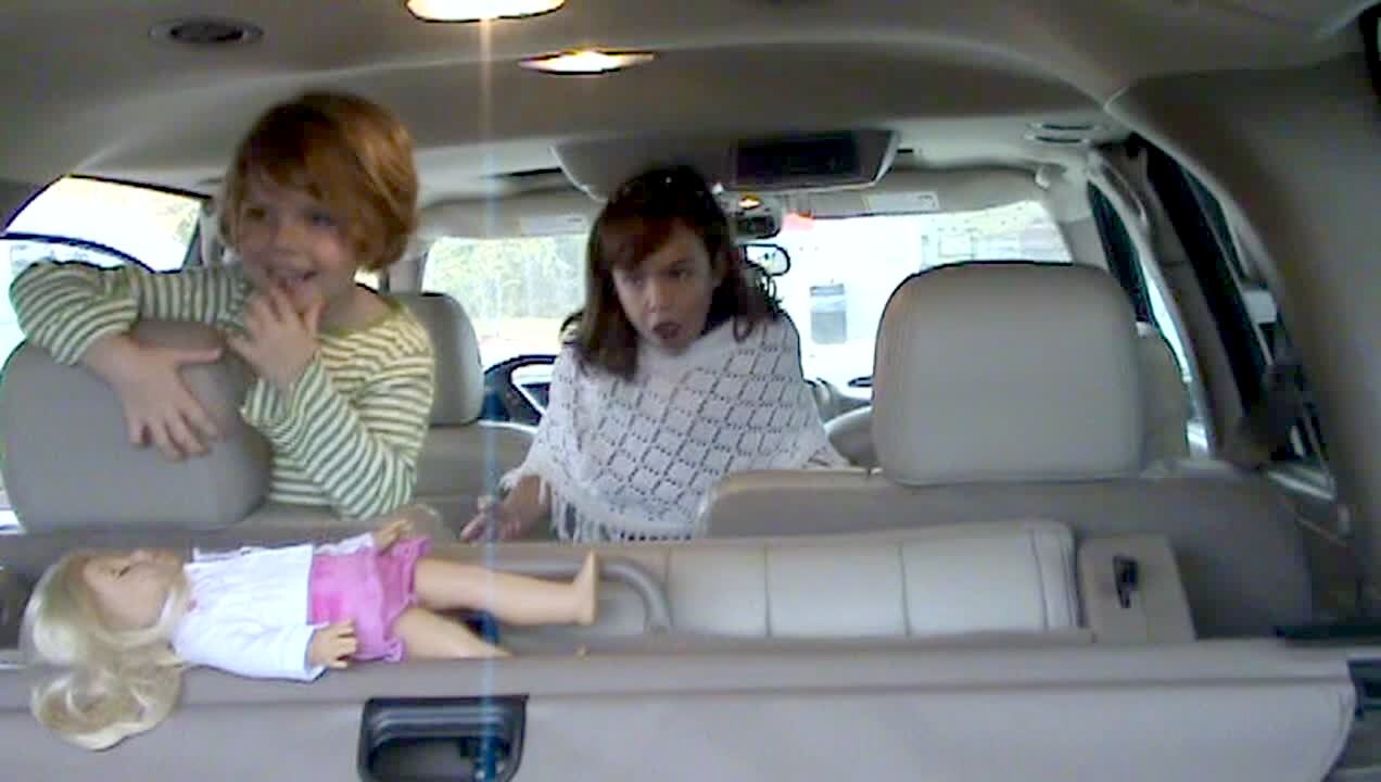 A woman dances in the bathroom while a man works behind her and leans on the curtain rod which breaks and he falls down into the tub.