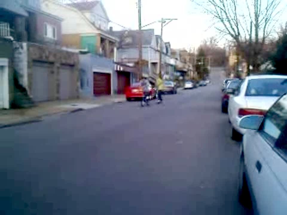 A woman sings "Trick or Treat, Smell My Feet" to a young girl on a porch, and the young girl shakes her finger and says "that's not polite." Halloween