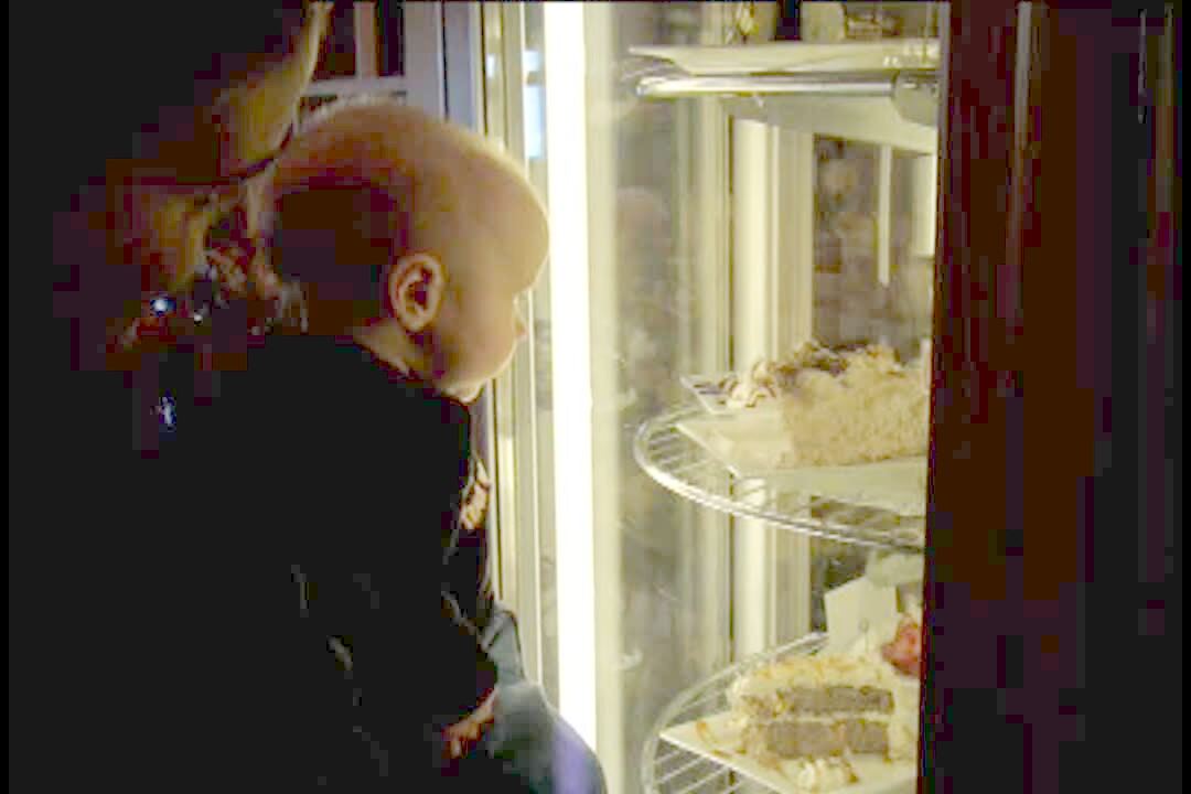 The camera holder kicks a ball that bounces off a house and hits a young girl in the back of the head.