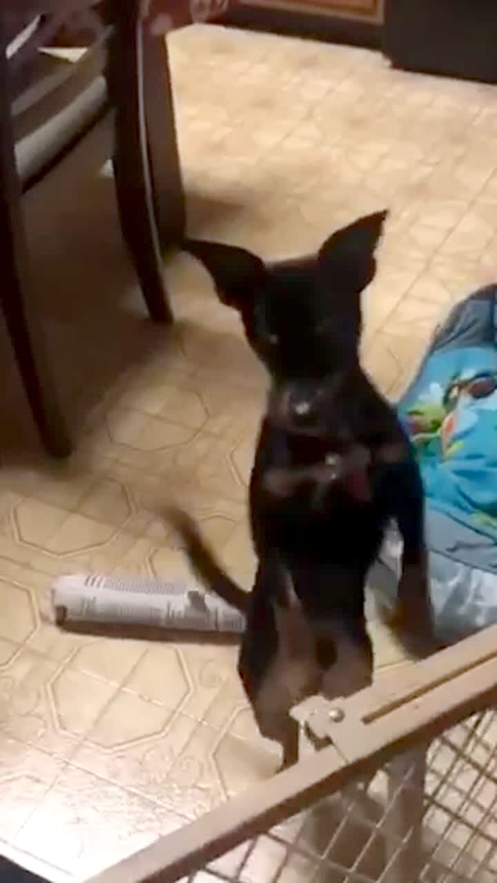 Teen girl dances to music holding a desk chair. She stands on the desk chair and falls forward.