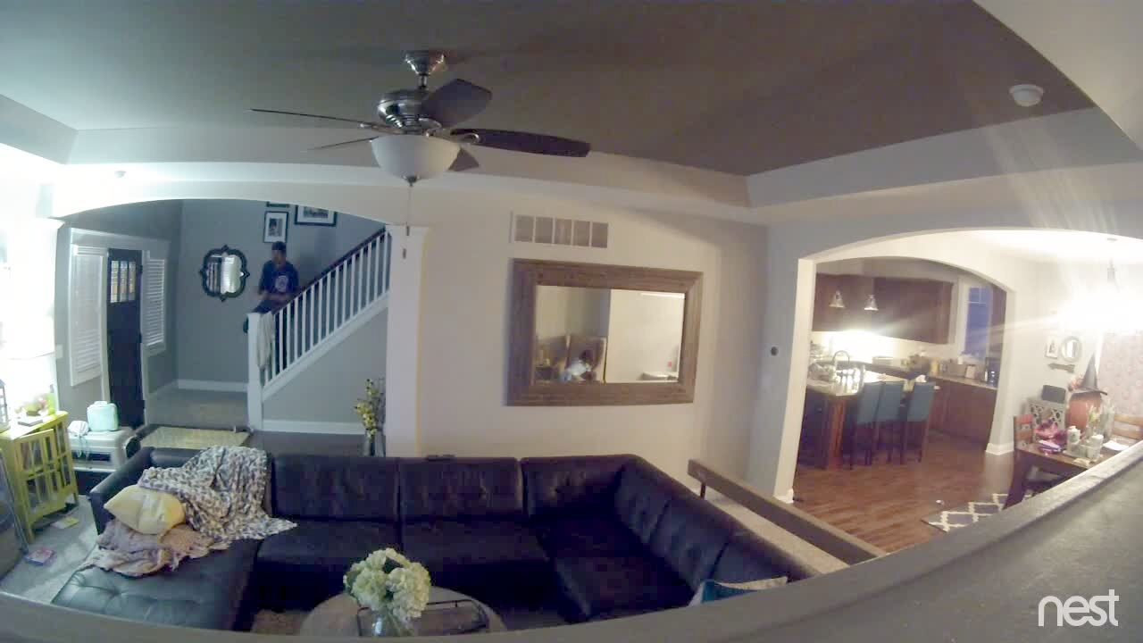 A man sleeps as his friends build a wall of cardboard moving boxes around him, then make sounds like someone is falling to scare him awake. Once he stands up, he leans on the wall of boxes and falls through to the other side. Practical joke.