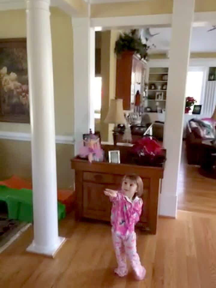 A tot girl has one hand that's full of suckers in the bedroom, and says she has "one sucker". When her mother asks about her hand that's full, the girl says "I'll put that back".