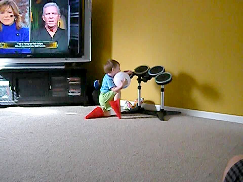 In this screen grab footage, a tot boy attempts to shuffle cards for the first time but instead makes a noise with his mouth.