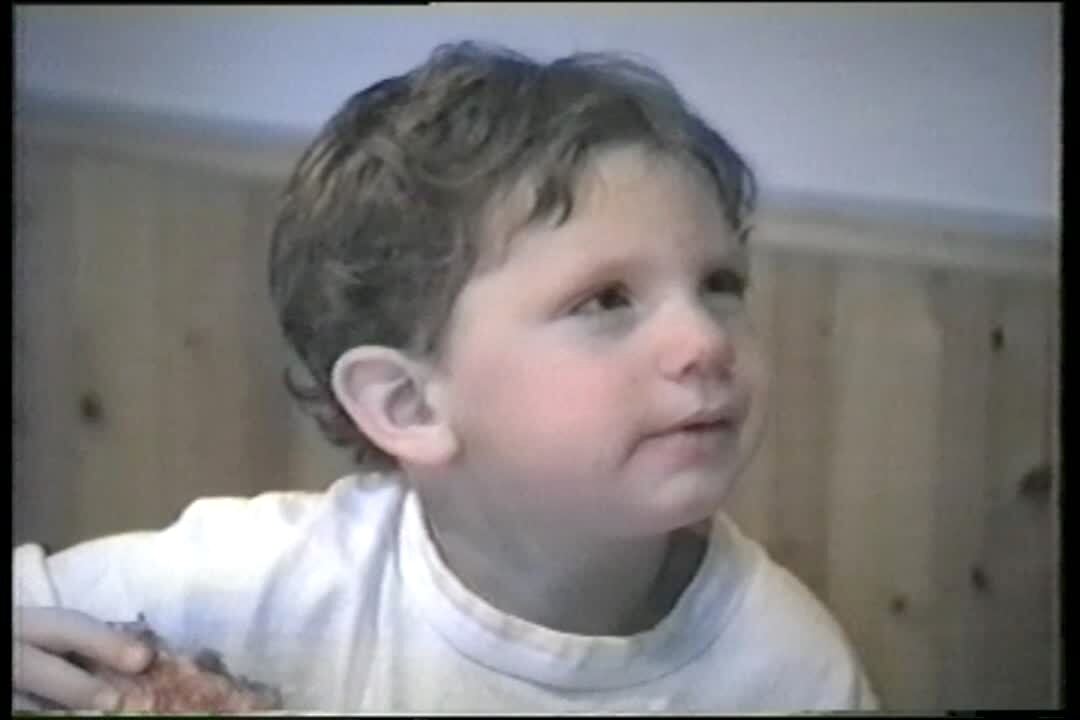 A young boy closes his eyes and holds out his hands for a birthday present. His mom gets him excited, then puts two pairs of socks in his hands. He opens his eyes, sees the socks, and his smile fades before he frowns and throws the socks.