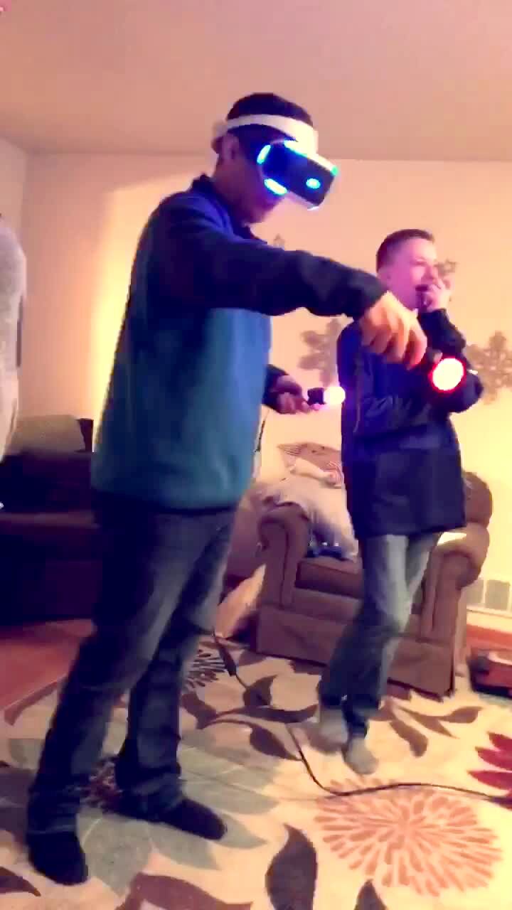 A boy says he is capturing paranormal acitivity and a kid girl wearing a sheet over their body while pretends to be a ghost. She bumps into a wall and then walks down a staircase and fall down the stairs hard. No recovery.