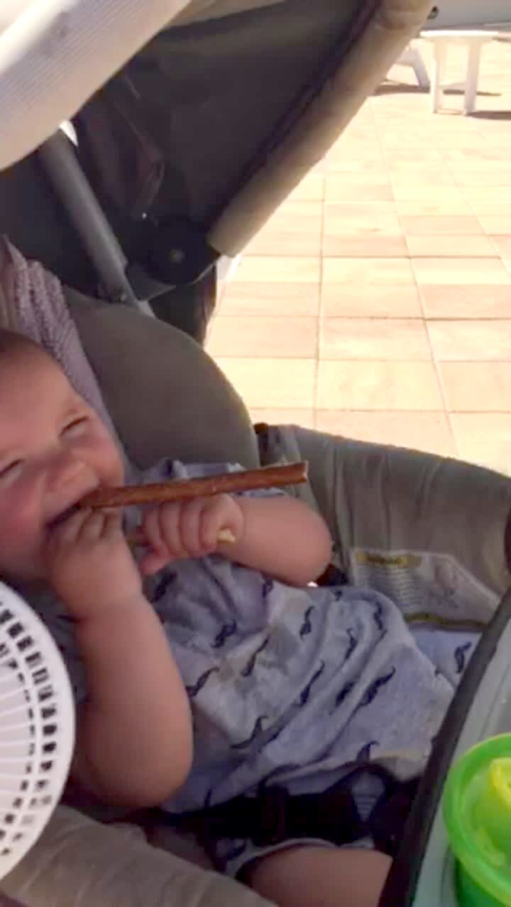 A young girl asks her tot brother what he's eating and he says "butt cake" while trying to say "cupcake."