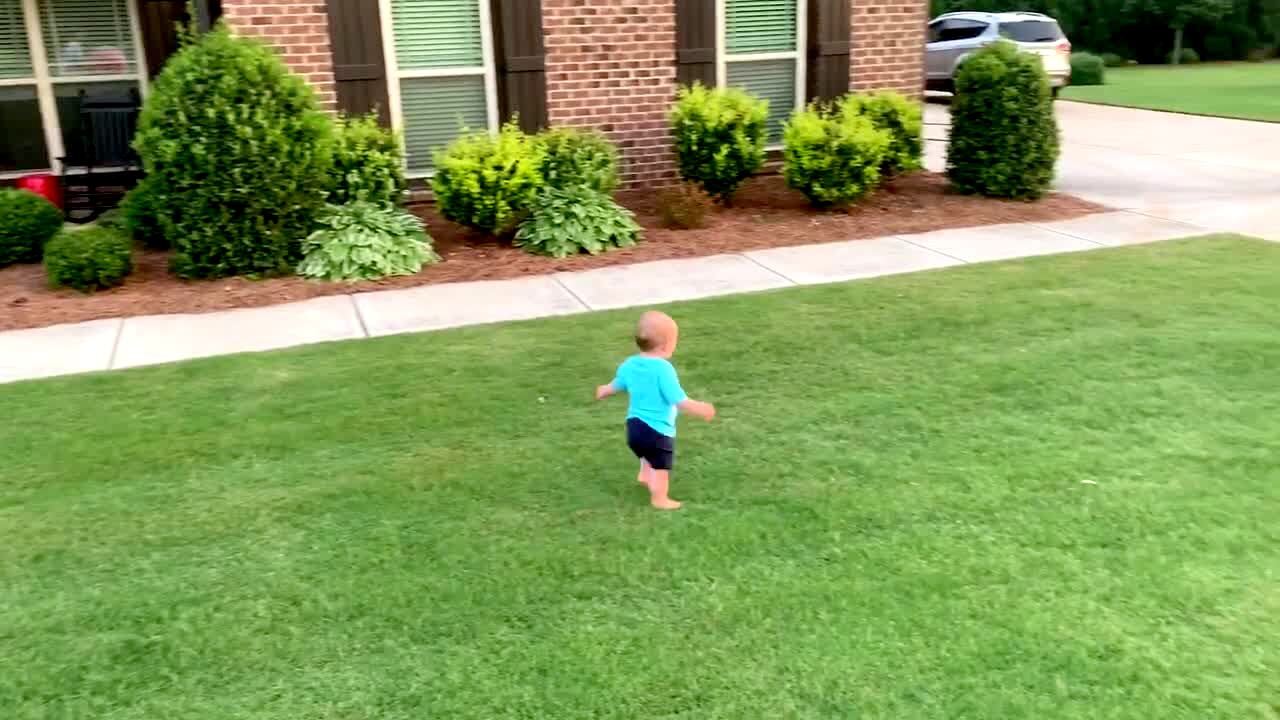 A tot boy drives over the chest of his older toddler brother in a power wheel at 1:40 then drives into the legs of his father.