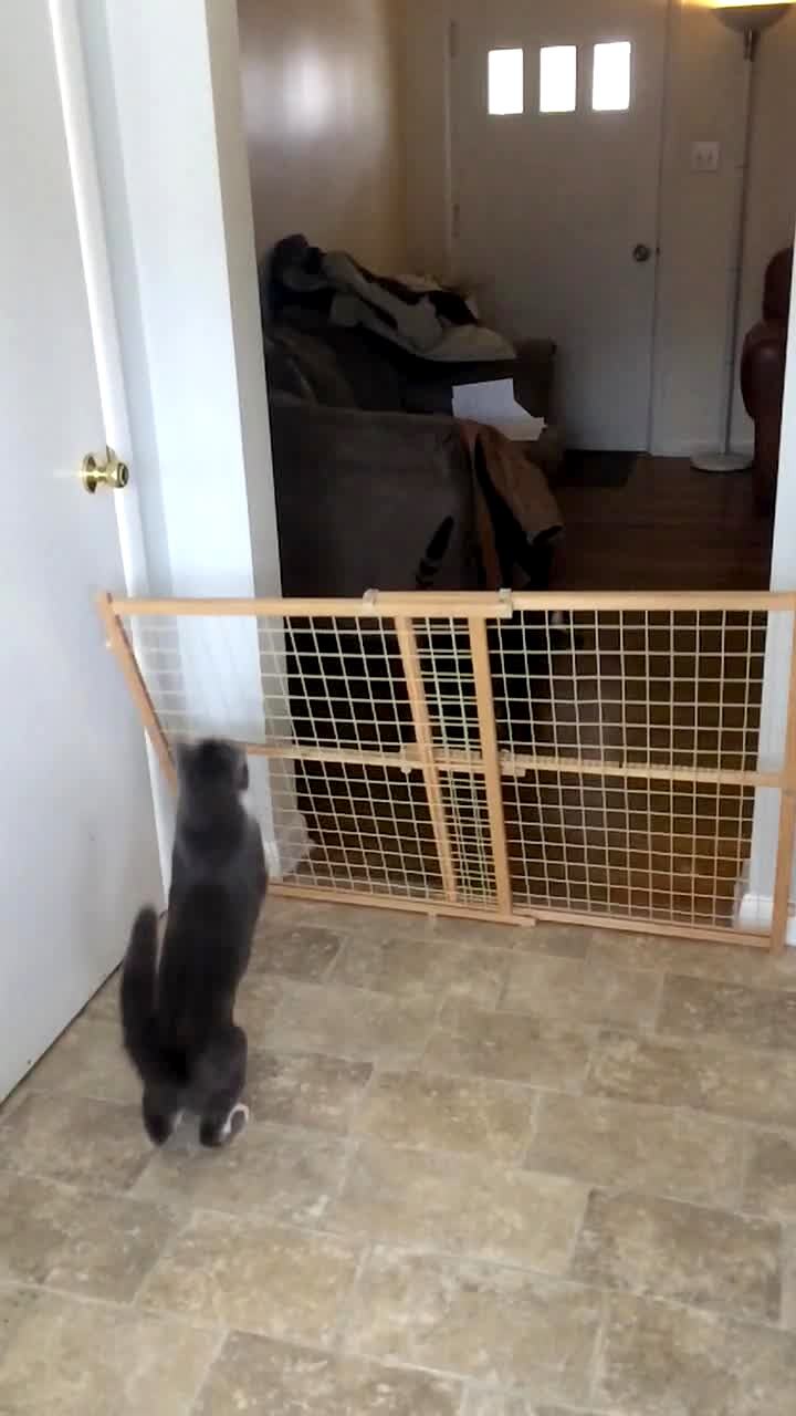 A man steps on a baby deer on his front porch, then runs away and screams when it cries. Then an adult deer comes back for it and leads it away. Security footage.
