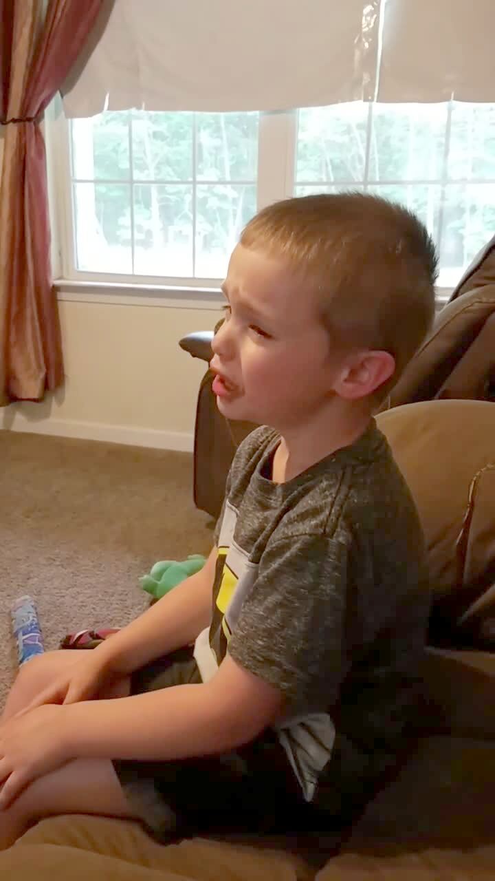Tot boy cries in the living room because he wishes that he could eat a squirrel.