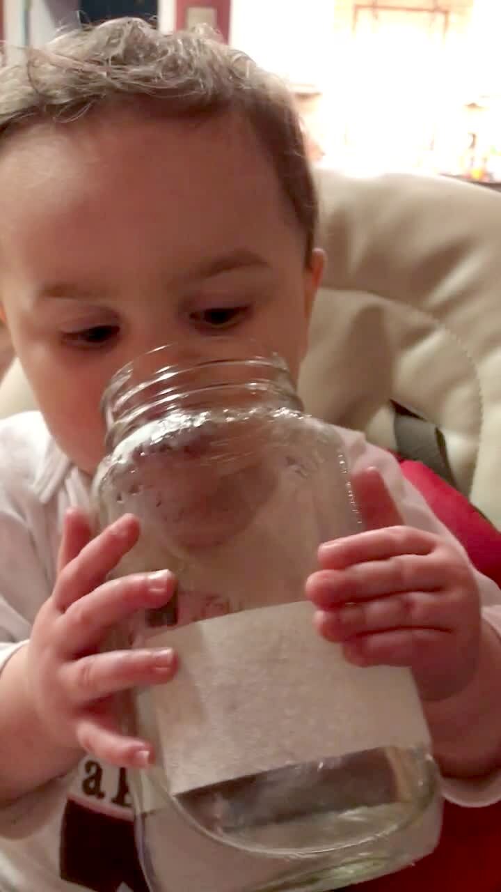 A tot boy misses the kiddie pool when he tries to jump in backwards.