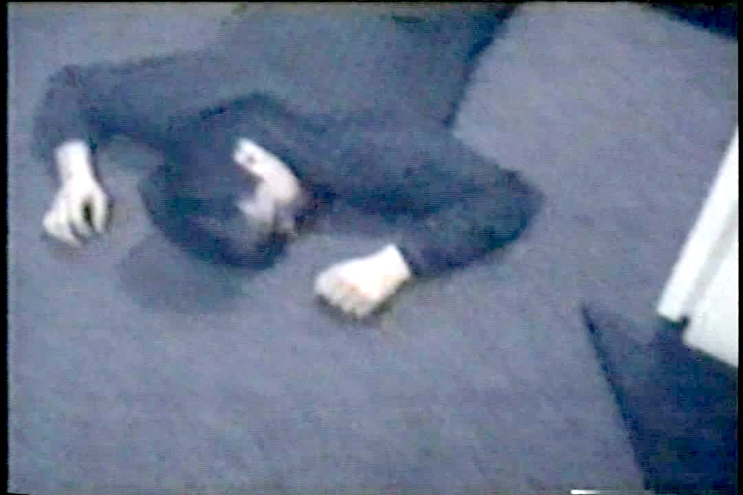 A man fixes a water line and the pressurized water sprays into his face. Security footage.