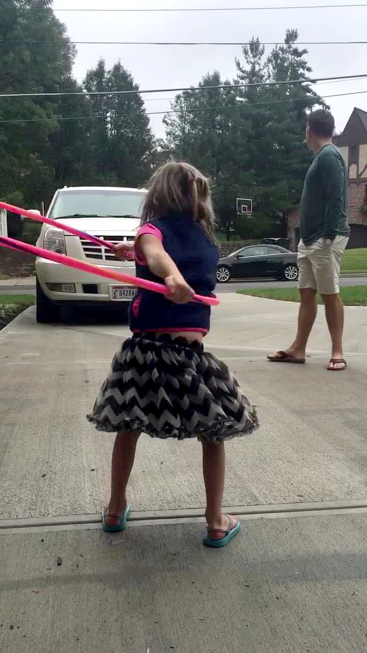 "Super Hooper" Boy hula hoops in the driveway. Other kids keep adding hoops to his waist... boy hulas with 6 hoops at once.