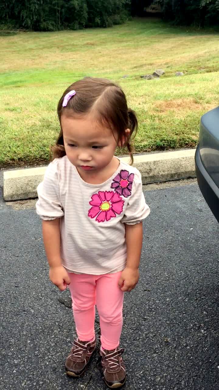 A tot girl cries as her dad tells her that she knows she is not supposed to touch a bowl. She picks it up and throws it on to the floor.