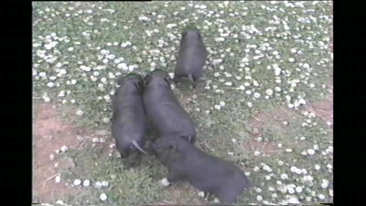 4 baby pigs wiggle their butts incessantly (11-113, 1324M)