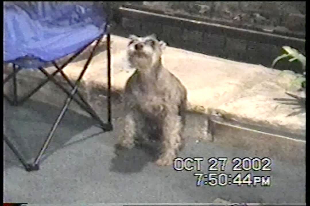 DANCING DOG. Dog dances on his butt as drum machine plays. (montage)
