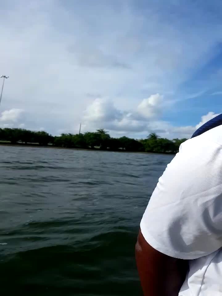 A young man says that he will jump over the side of a boat, then he runs across the boat deck, hits a bench, and falls down.