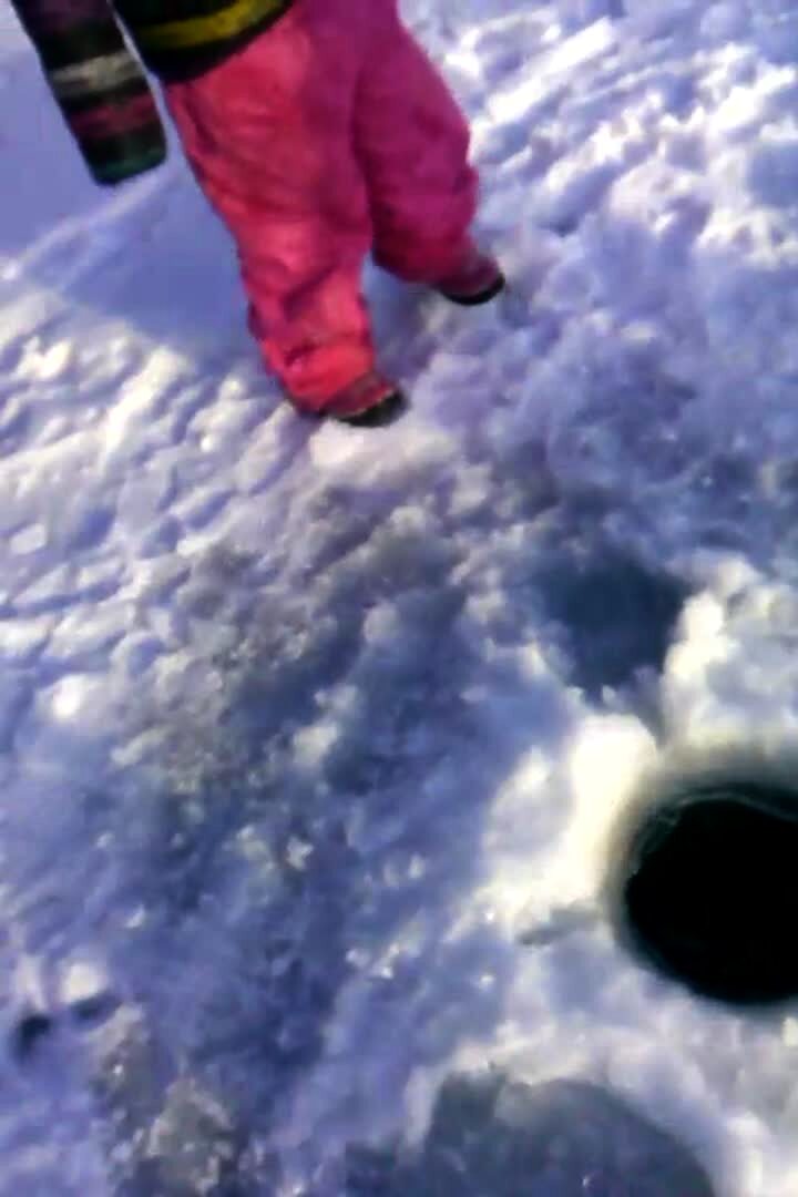 Two women try to jump from a trampoline to a lake, but the trampoline breaks, and one of them falls in the water.