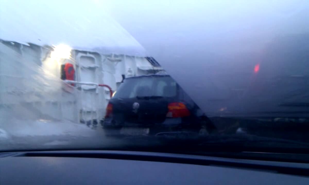 A woman leaves her car window open, and a snowstorm comes in and piles into the car.