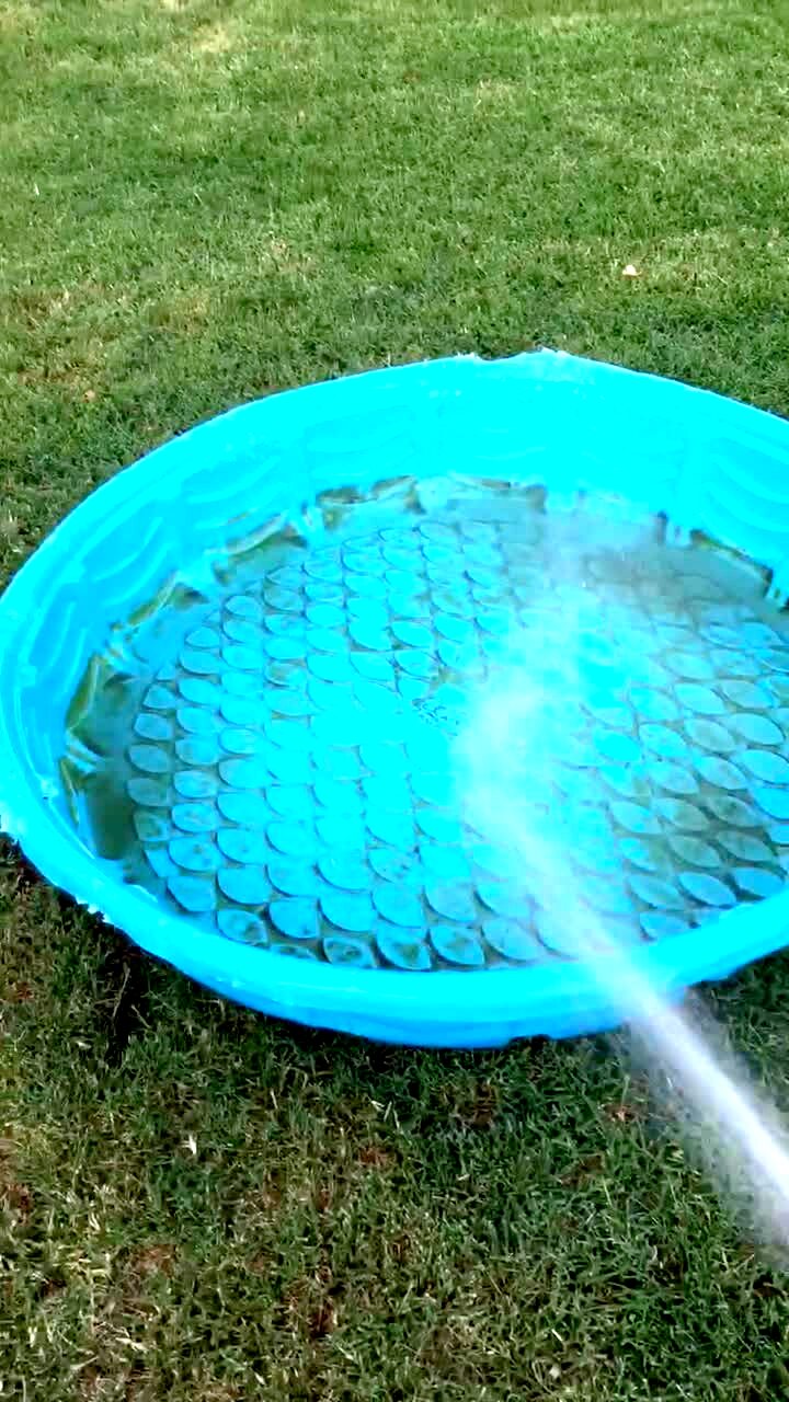 A clever dog turns on a water hose so it can bite the water that sprays out.