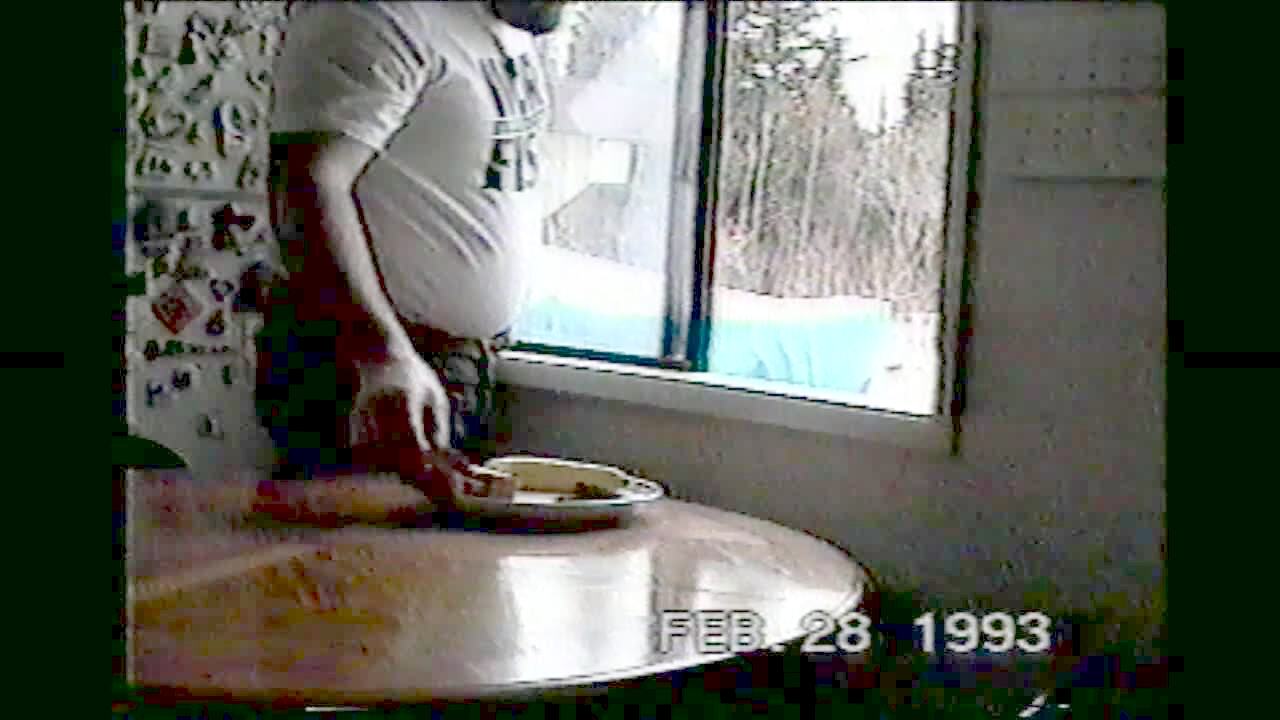 A woman screams and gasps when she pulls a game hen from inside of a stuffed turkey. Her family convinces her that she cooked a pregnant turkey. Practical joke. Thanksgiving