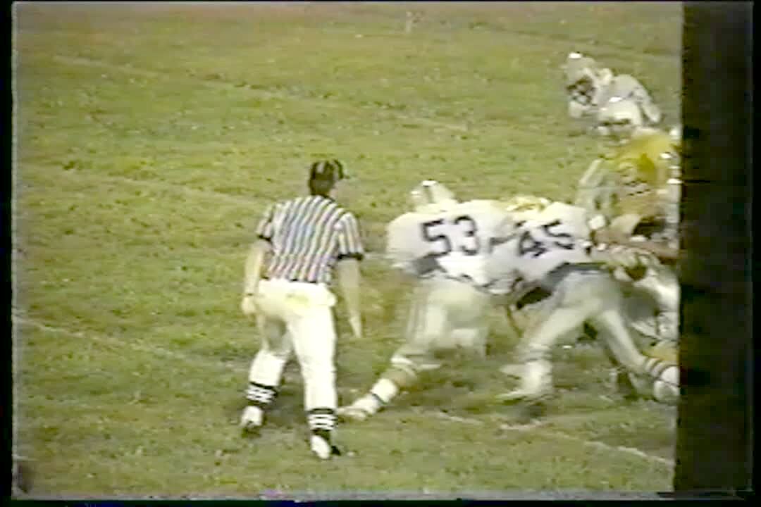High school football game. Teen gets tackled when his jock strap is grabbed.