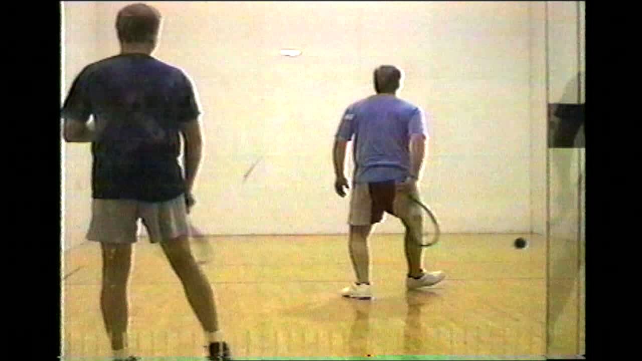 AA: Super Bowl. Racquetball player gets hit in the butt with ball.