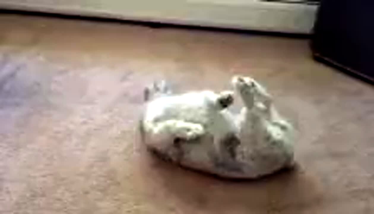 dog dancing to music while on its back