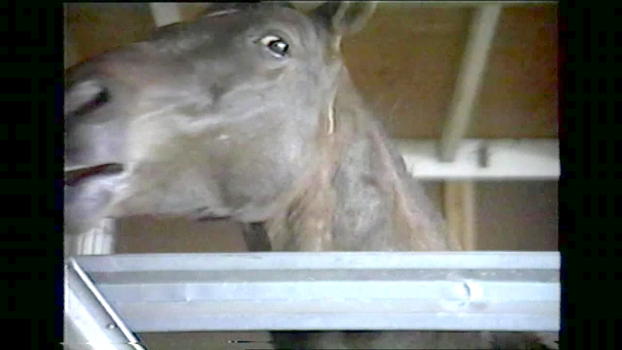 Horse shakes head wags his tongue