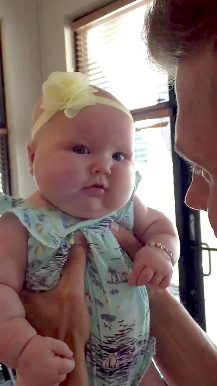 A video filter puts a beard on a baby. The baby sneezes and the beard shifts to the man holding the baby. Vine/Instagram