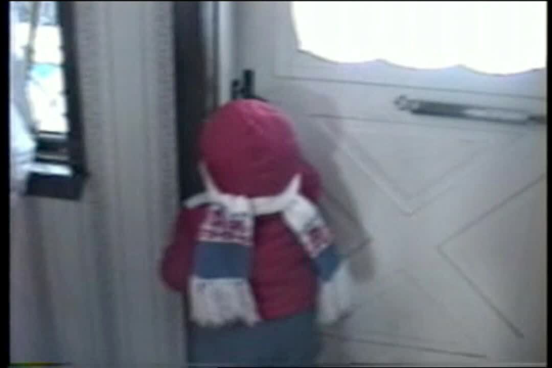 BOY SLIDES ON ICE Boy almost snow slides into dog poop down snowy hill. Points it out to dad.