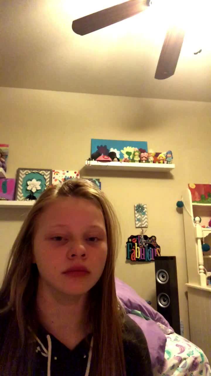 Teen girl runs into wall with yoga ball. She bounces back and onto her bed. She does it again and hits her head on the bed side table. She says she is imitating Jackass