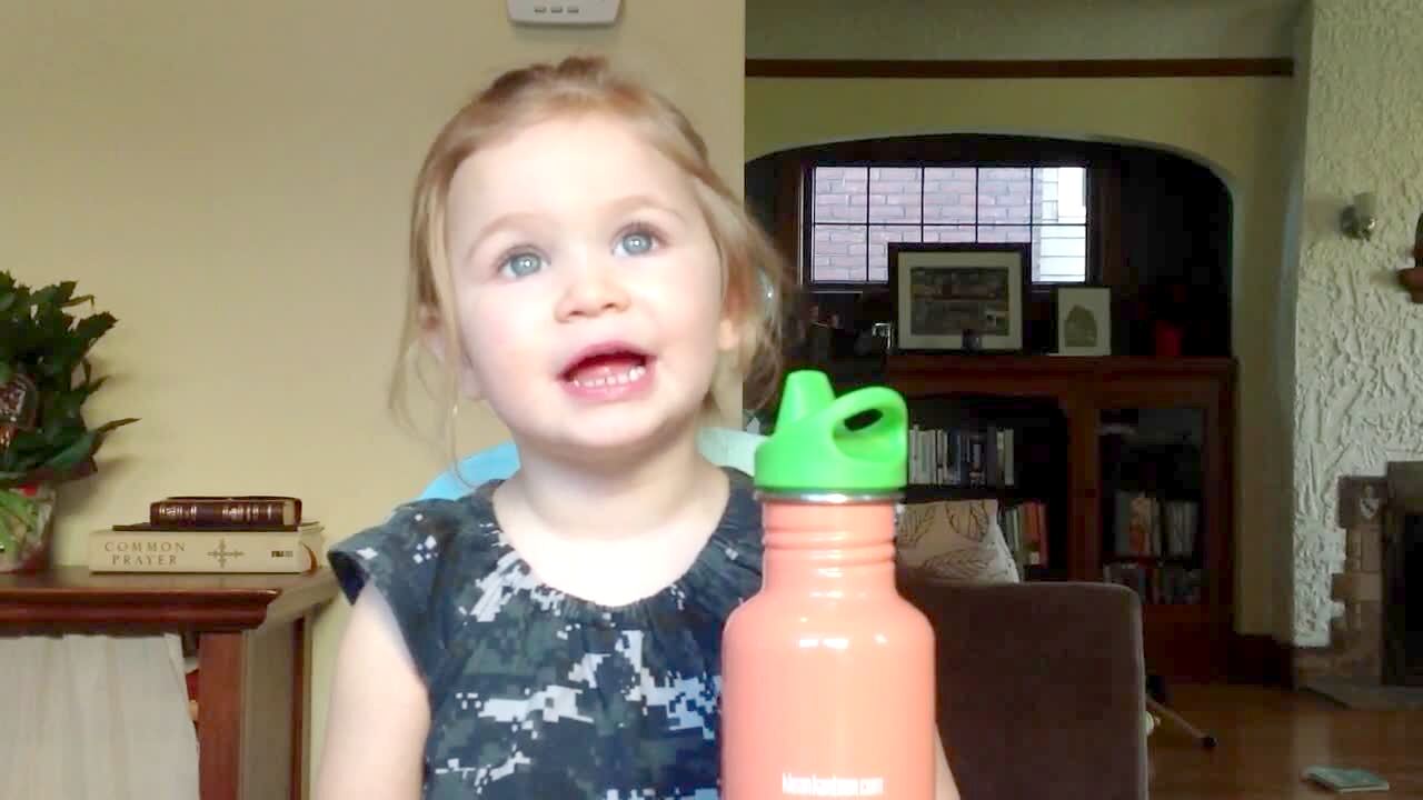 Tot girl in living room sings Star Spangled Banner. Cute.