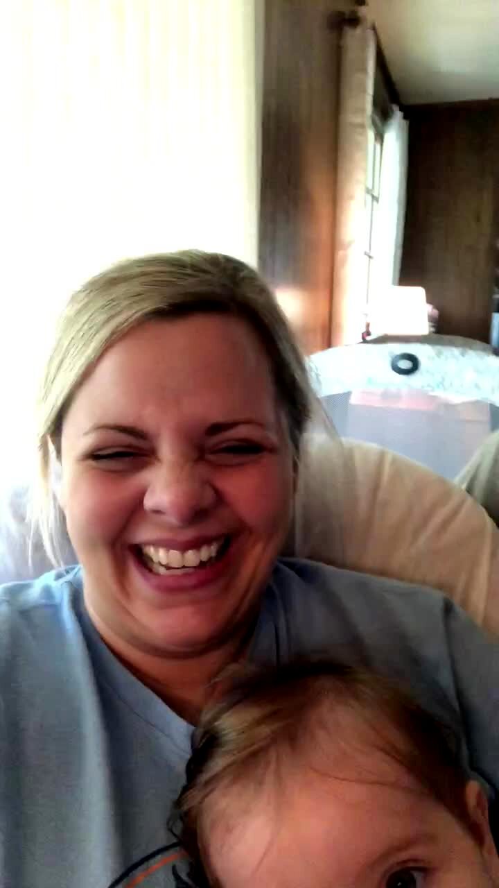 "Nowhere Near Her Brassiere" A woman takes a selfie video with her son and daughter for her online students when her son says "mama don't have a bra on."